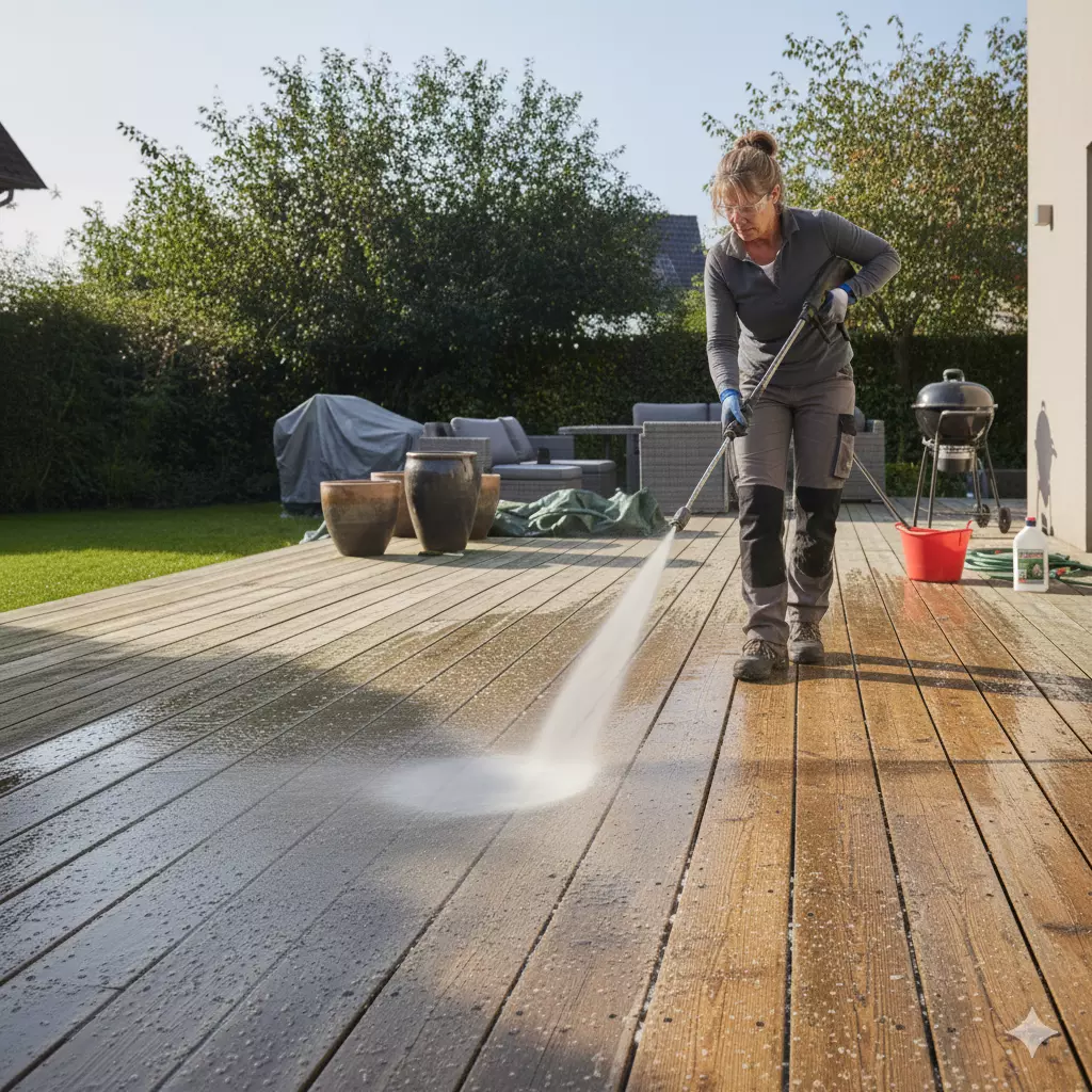 Voici un guide étape par étape pour nettoyer votre terrasse en pin sylvestre classe 4.